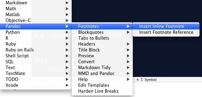 作者用的是开源的TextMate,搭配Pandoc TextMate bundle