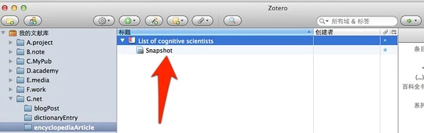 嗯?这次保存下来的为什么与上次的不太一样!多了个快照?点击看看!原来这是Zotero软件的另一个强大而贴心的功能,它自动将网页的快照拍摄下来了。这样,未来这个网页消失了,我们的资讯还没丢失!