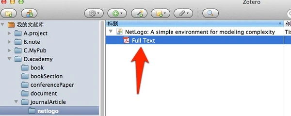 打开Zotero软件,我们会发现,之前鼠标定位的子类下面,会多出一个条目,如下图所示: