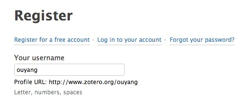 登陆https://www.zotero.org/user/register/,注册一个自己的Zotero账号,请特别记住,username会直接生成个性域名,别乱起,未来会有些不方便。