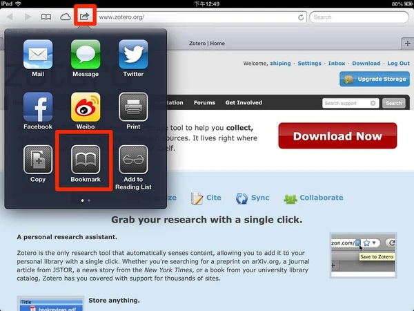 以iPad的Safari为例,安卓的Chrome步骤大同小异。说说如何给Safari增加保存到Zotero文献库的选项。