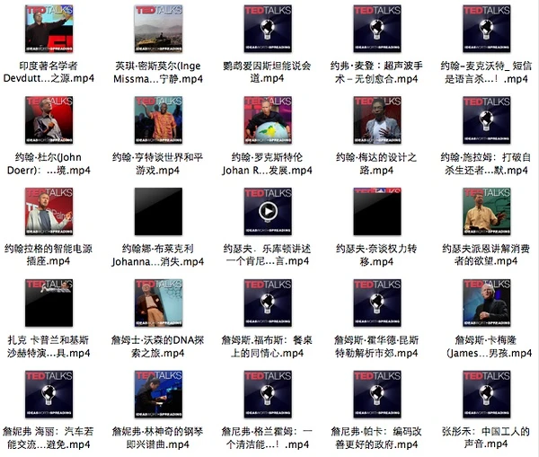 我们发现,所有之前下载的TED视频的文件名全部根据zh-ch这个界定,自动更新为中文名称了: