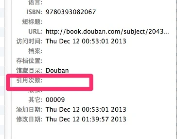 别急,这是该插件开发者为了避免将你条目自带的【引用次数】字段与【Google学术引用次数】冲突,所以,他将其保存在【其它】那个字段里面去了。怎么显示它?如下图所示: