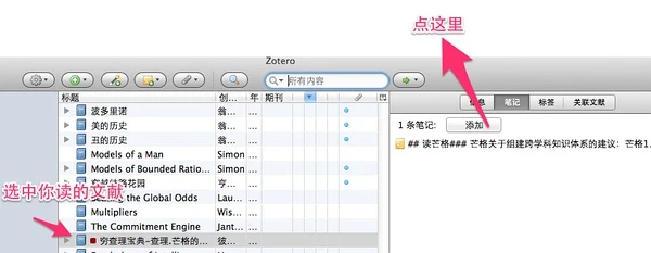 1、在丹尼特这本书的条目这里,创建一个【重要文献】类似标签;