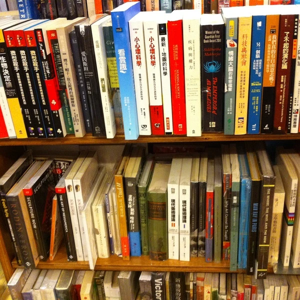 题图:kubrick是一家位于香港油麻地的文艺书店(经友人TonyYet介绍)。它与经常播放小众电影的百老汇电影中心在同一幢物业。题图为书架一角。
