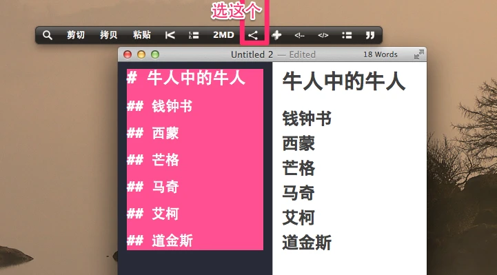 安装好了,打开你常用的思维导图软件,如Mindnode,在popclip菜单粘贴过来就好了。如下图,在Mou的写作界面。