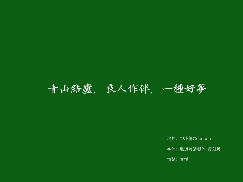 字体情绪以人类十种积极情绪为线索,整理十款漂亮中文字体。让PPT和Keynote不再单调阳志平·2014年5月6日以人类十种积极情绪为线索,我整理了十个较少使用,漂亮的中文字体。供大家写ppt或keynote时参考。 PDF下载地址。 F001 F002 F003 F004 F005 F006 F007 F008 F009 F010 F011 F012 F013生活纪念