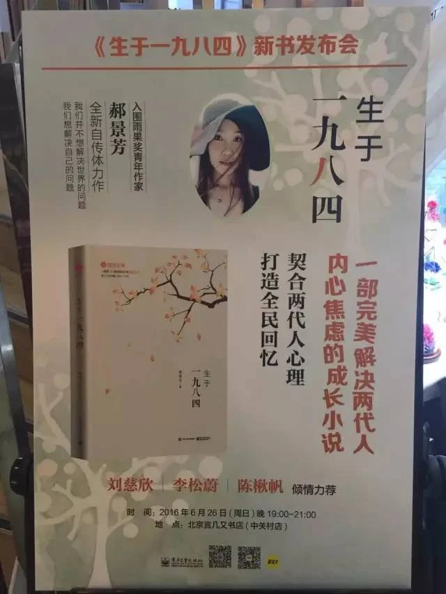 明天(6 月 26 日)晚 7 点,在中关村创业大街的言几又书店,《生于一九八四》新书发布会即将举办,景芳与两位老朋友陈楸帆、李松蔚对谈。三位小伙伴都是分别出生于 1984 年左右。他们也将聊聊相似的成长经历。具体活动地点与报名可以参见:http://t.cn/R5jPnF6