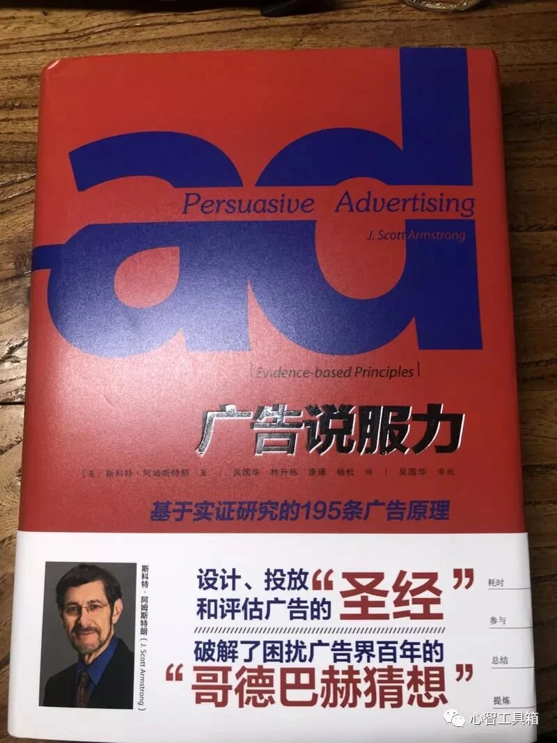 Armstrong, J. S. Persuasive Advertising. (Palgrave Macmillan, 2010). 年度消费行为学神作。人类追求智慧,但理性主义者并不是每次都能战胜反智主义者。Persuasive Advertising 这本书是理性主义者在消费行为学领域一次里程碑的胜利。营销学界的一流学者 J. Scott Armstrong ,带着两位广告界的大佬,用16年时间,终于完成了一项庞大工程。那就是,整理了来自心理学、社会科学、认知科学、营销学、消费心理学领域的所有证据。最终,写出了一本巨著:Persuasive Advertising: Evidence-based Principles 。