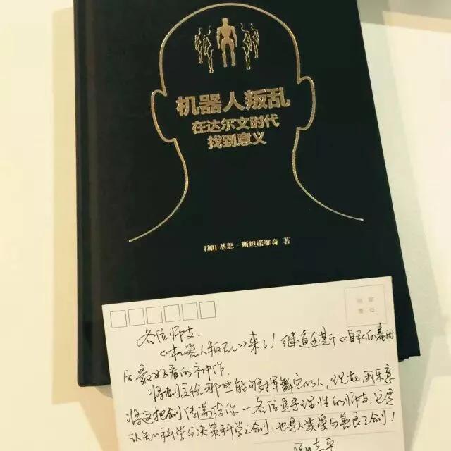 6 月 23 号,端午节后上班第一天,我的面前,是一批精装本图书。它是认知科学家斯坦诺维奇(Keith Stanovich)《机器人叛乱》的简体中文版。我是中国第一位拿到图书的读者。当天收到图书后,立即给期盼已久的师友们快递过去。在随书贺卡上,我激动地手写了如下赠词: