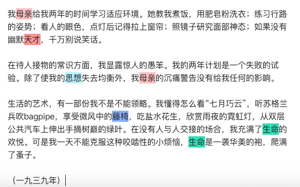 比如,这是拿张爱玲的《天才梦》标注的结果: