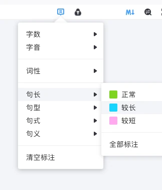 对于写作者来说,最推荐使用「智能标注」的「词性标注」与「句长标注」两个功能。