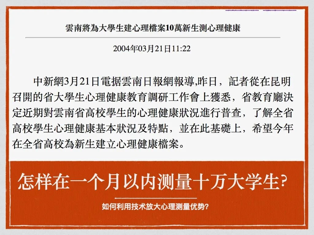 2004 年,创业迎来了第一个转折点。2004 年马加爵事件发生,心理测量变得重要。