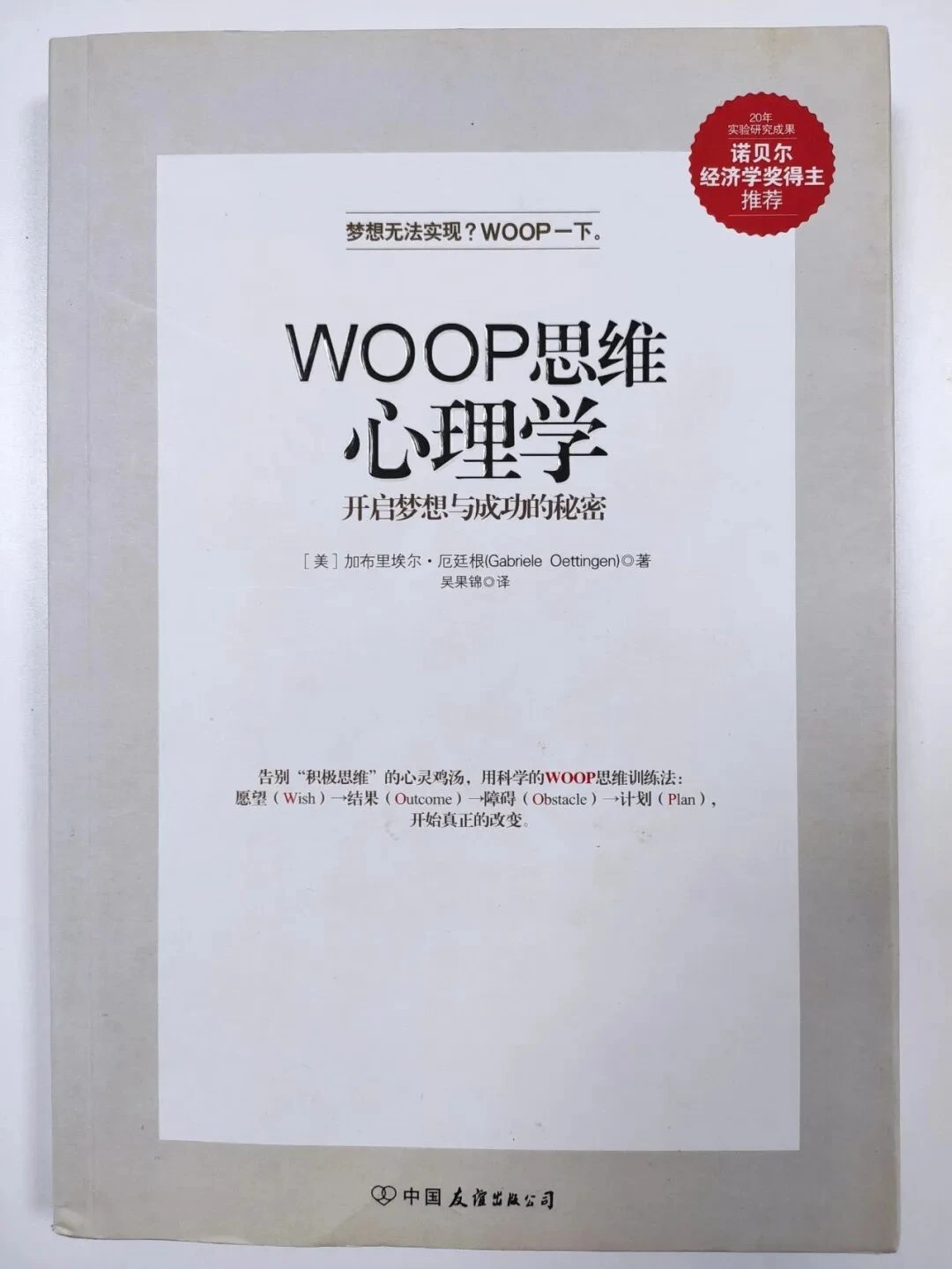 中文书目:加布里埃尔·厄廷根. (2015). WOOP 思维心理学 (吴国锦, Trans.). 中国友谊出版公司.