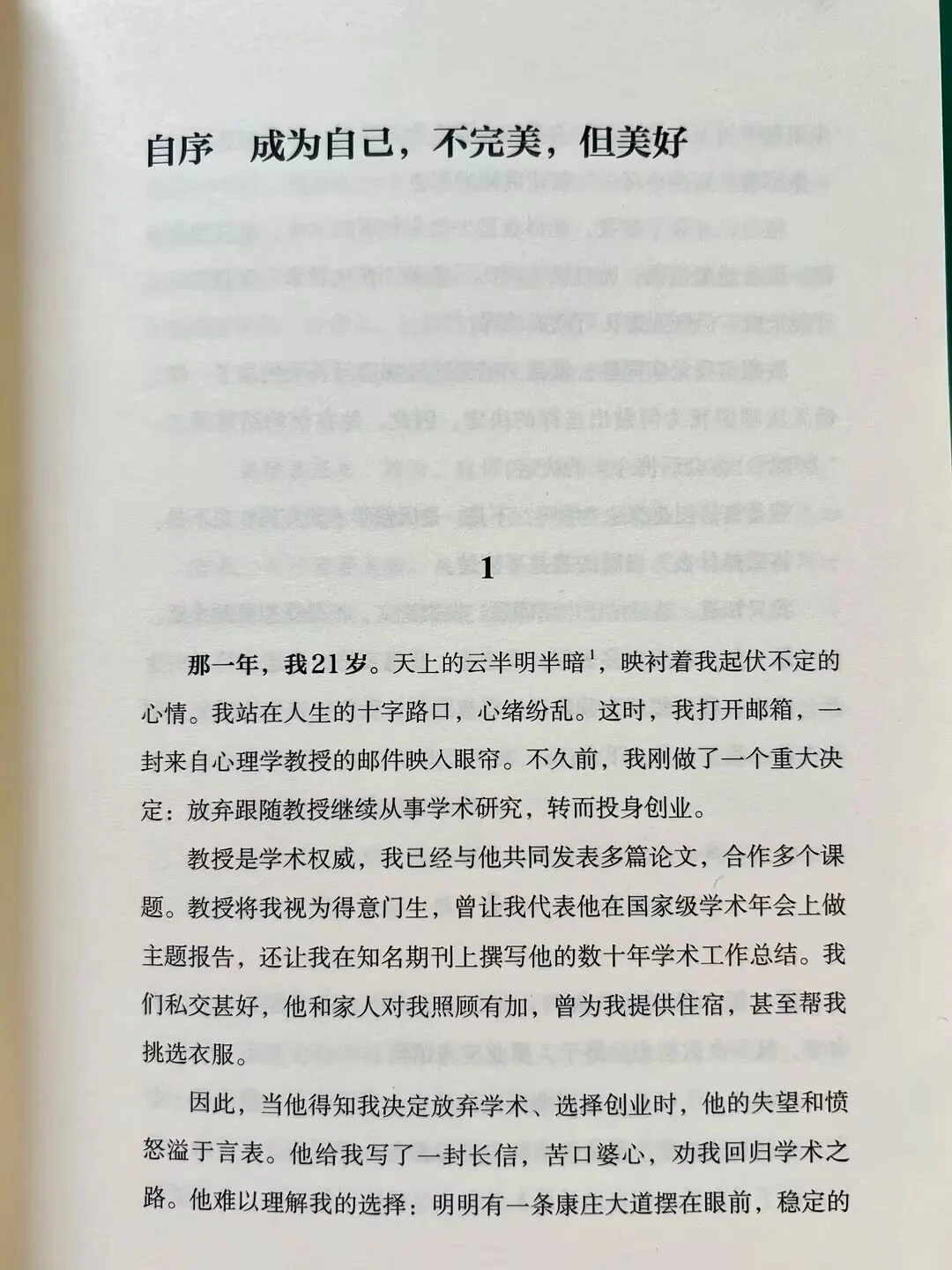 因此,正如《成长的心智》自序所言,我在 21 岁时选择创业,心中格外不舍,熟悉我的师友也很不理解。自序中提到,一位心理学教授给我写了一封长长的邮件,劝我回头。